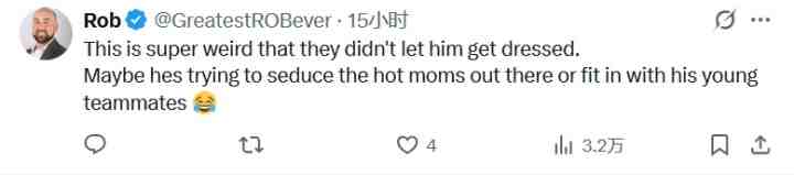 網(wǎng)友5:他們不讓他穿衣服,這也太怪了吧,可能他是想勾引那些辣媽吧,或者想和年輕的隊(duì)友們打成一片。