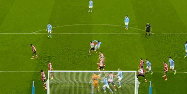 第66分鐘,切爾基右路橫傳,福登頭球沖頂破門,3比0!