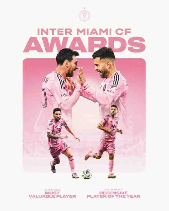 官方:梅西當選邁阿密國際年度MVP,阿爾巴獲評年度最佳防守球員