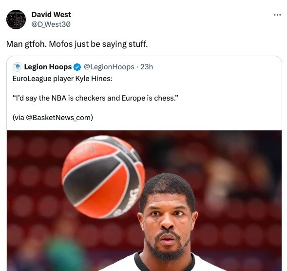 前NBA球員大衛(wèi)-韋斯特轉(zhuǎn)發(fā)了美媒曬出的該言論,并寫道:“我的天,滾你媽的。混賬東西在胡說八道。”